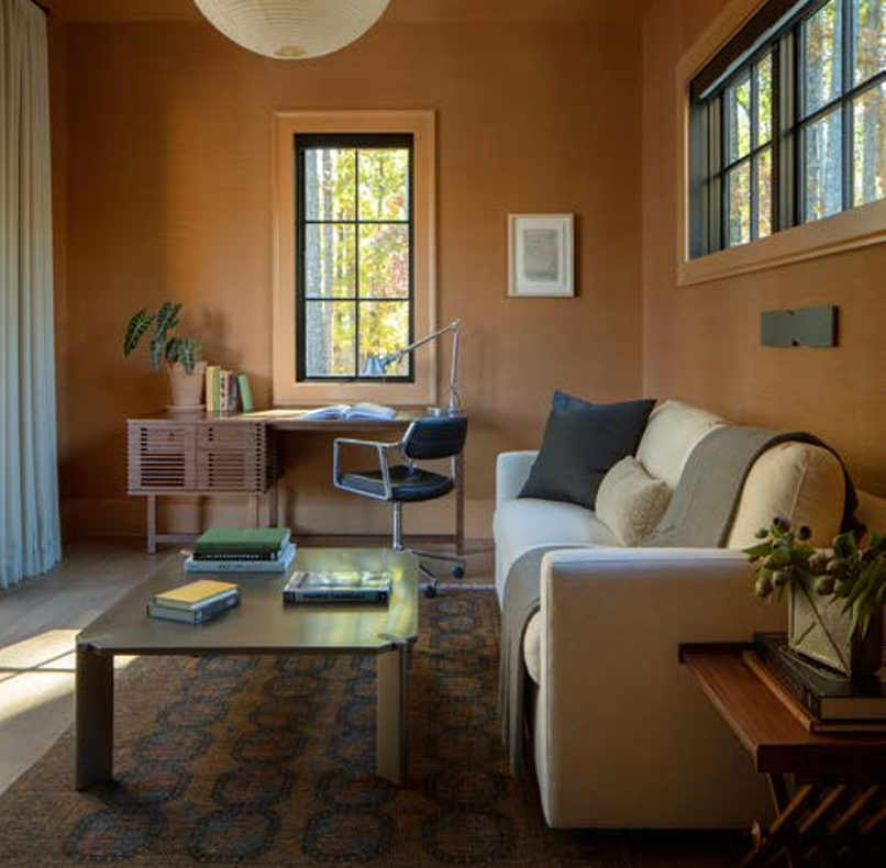 The collection culminates in a hand-stitched, quilted wall-hanging of Lake Lanier by Brooklyn-based Haptic Lab, tracing the path of the Chattahoochee River and honoring the area’s lost Indigenous and Black histories. This project offers a new point of view for Atlanta, where a lake house becomes a refined, quietly modern retreat rooted in meaning, materiality, and memory